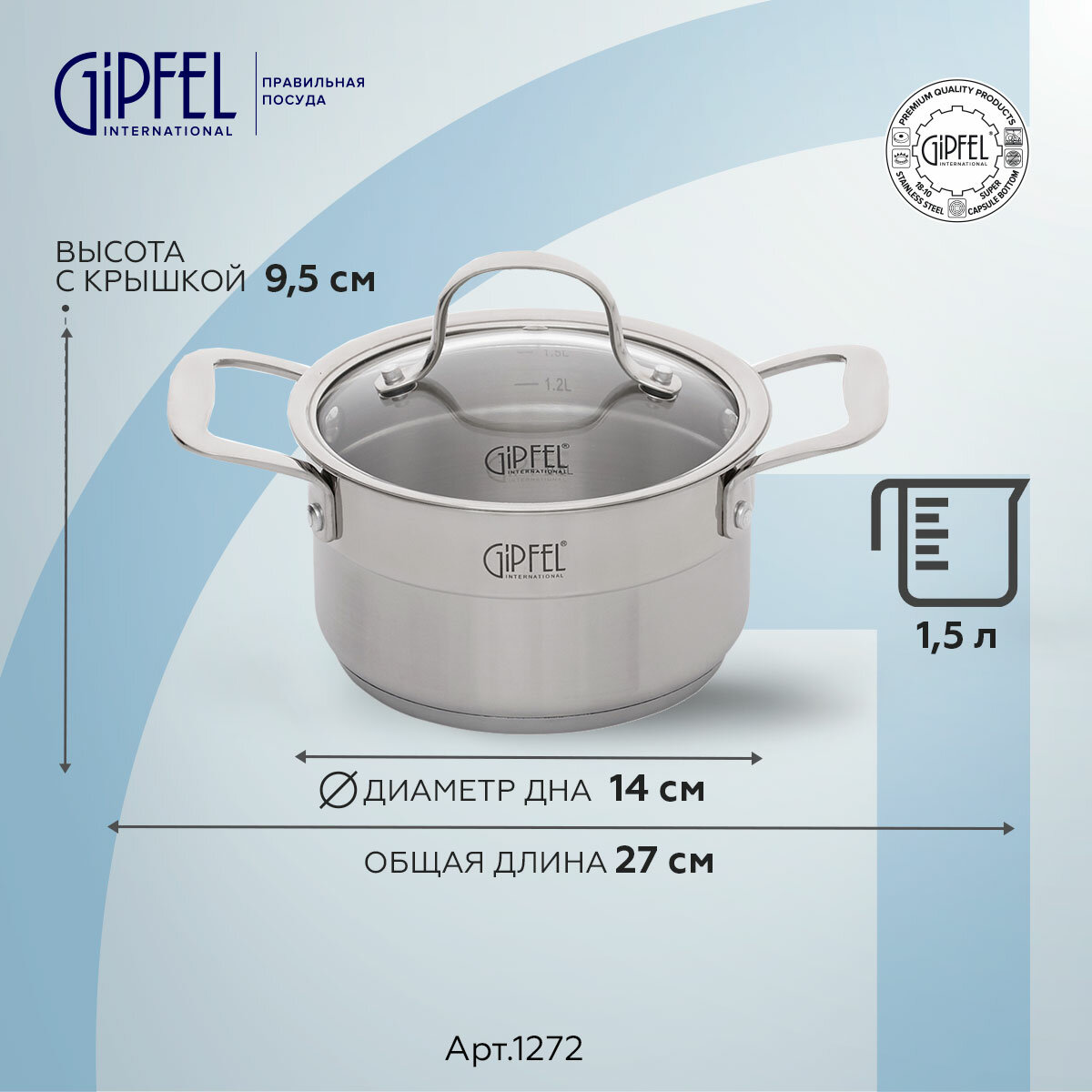 Кастрюля из нержавеющей стали Gipfel Gala 1272 16 см/1,5 л информация: