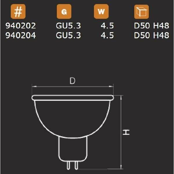 Лампа светодиодная Lightstar 940204, G5.3, MR16, 4.5Вт, 4000 К