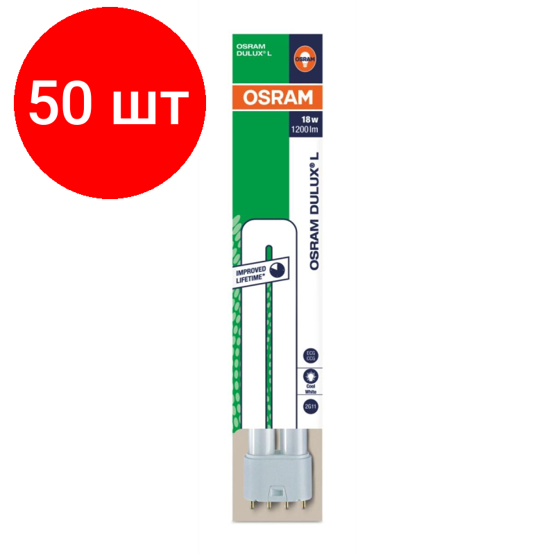 10 цен на Комплект 50 штук, Лампа люминесцентная КЛЛ неинтегрированная OSRAM CFL DULUX L 18W/840 2G11
