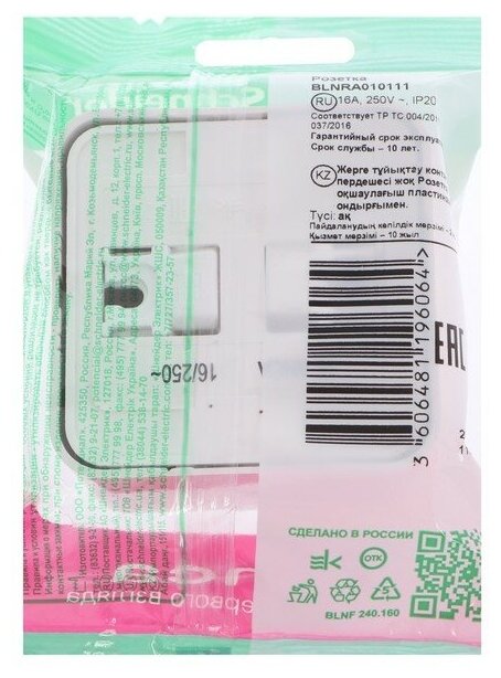 10шт. - Розетка BLANCA наружная 4-я с заземлением со шторками с изоляционной пластиной 16А 250В белый / Systeme Electric; арт. BLNRA011411; оригинал / - комплект 10шт 5 866 ₽