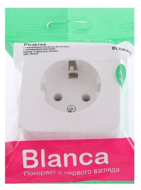 10 цен на BLANCA О/У розетка с заземлением без шторок изол.ПЛ., 16А, 250В, белый