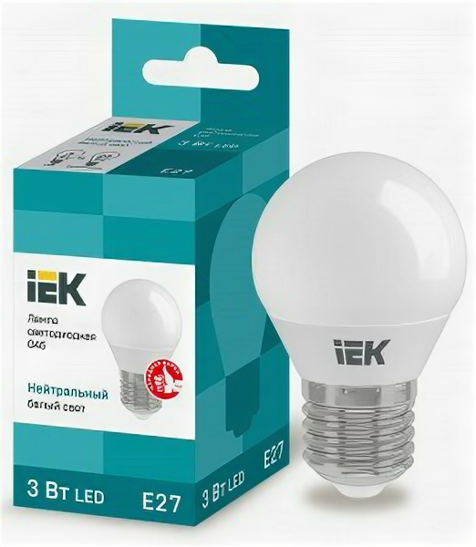 Лампа светодиодная ECO G45 шар 3Вт 230В 4000К E27, IEK LLE-G45-3-230-40-E27 (1 шт.)