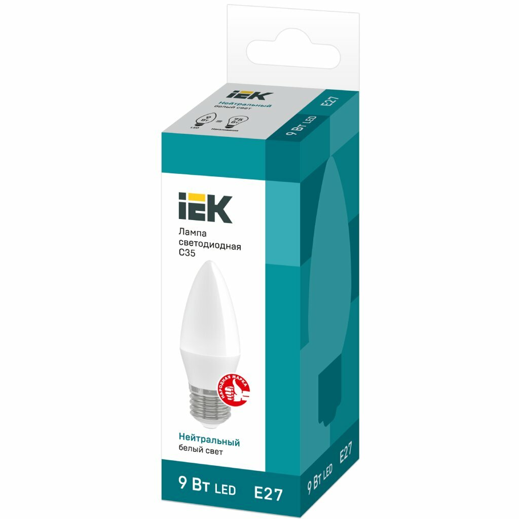 Отзывы на Лампа светодиодная E27, 9 Вт, 60 Вт, 230 В, свеча, 4000 К, свет нейтрально-белый, IEK, C35, LED