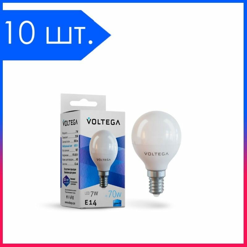 10 цен на Лампа светодиодная Voltega E14 7W 4000К матовая VG2-G45E14cold7W 7055, 10шт