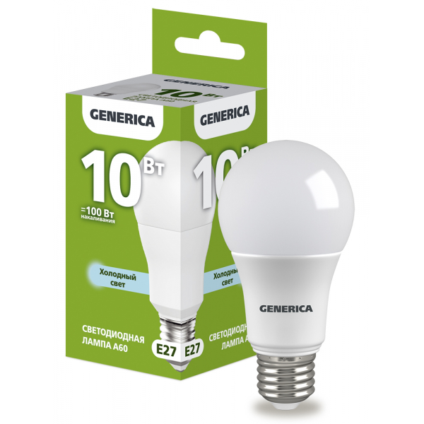 GENERICA ЛОН A60 E27 10W(1000lm) 6500K 6K 55x100 матов. LL-A60-10-230-65-E27-G (арт. 827959)