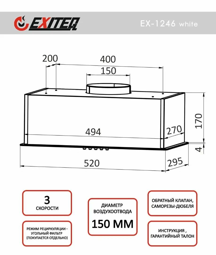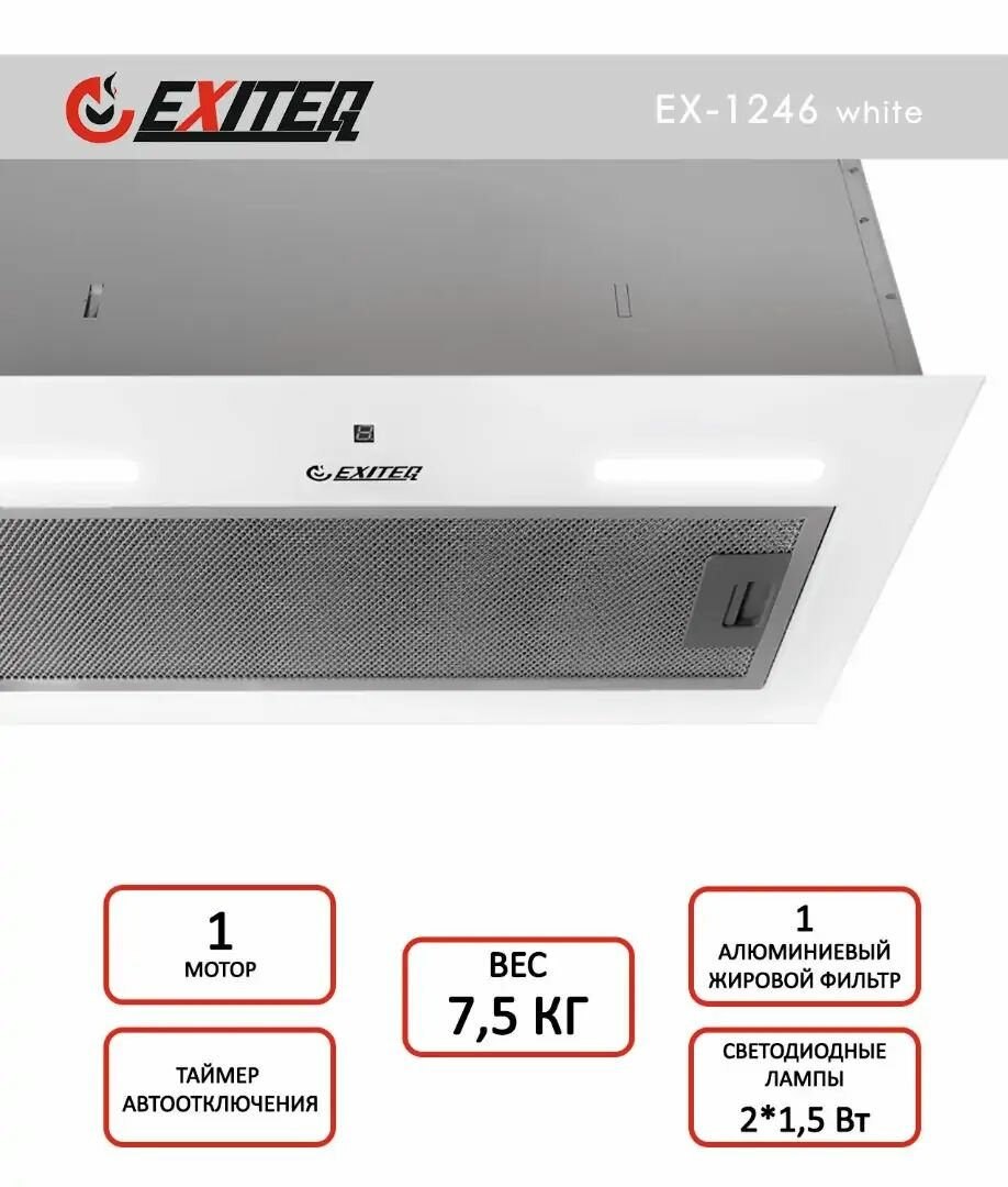 Встраиваемая кухонная вытяжка EXITEQ EX-1246 WHITE информация: