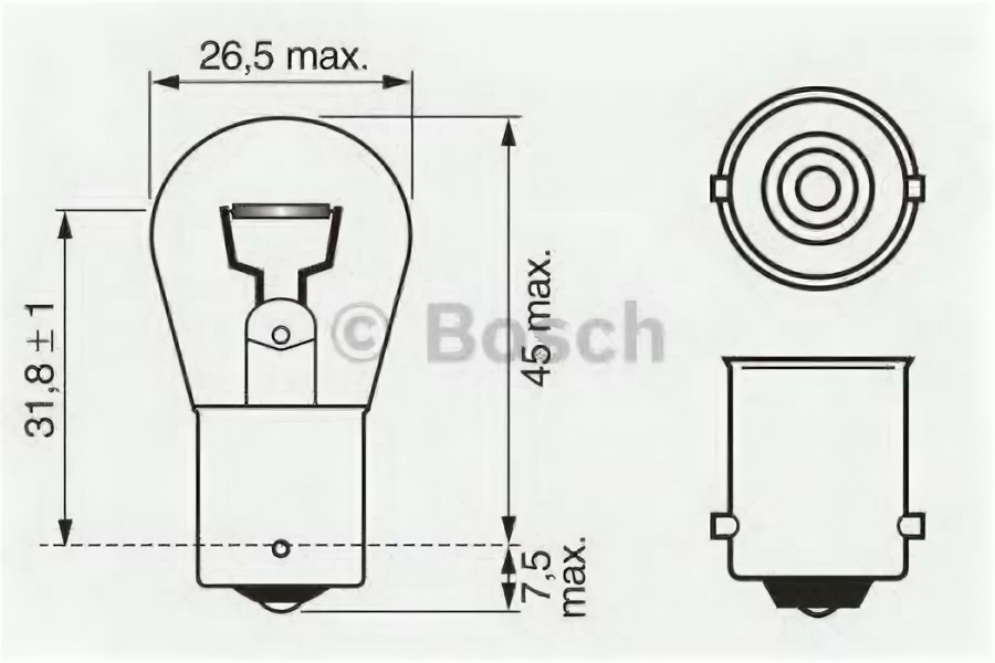 Лампочка 12V Р21W BOSCH (одноконтакт.)