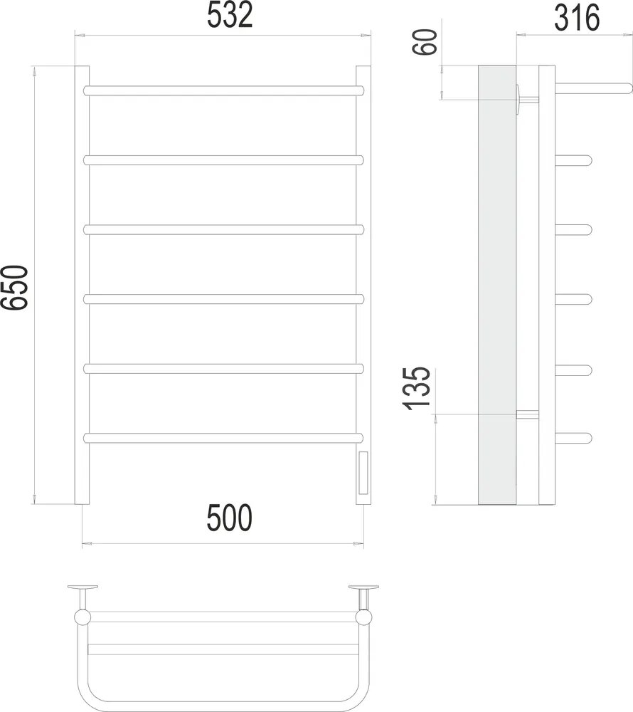 Полотенцесушитель электрический Terminus Полка П6 500х650 хром информация: