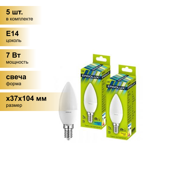 Отзывы на (5 шт.) Светодиодная лампочка Ergolux свеча C35 E14 7W(570lm 220°) 4500K 4K матовая 99x37 пластик/алюм. LED-C35-7W-E14-4K . Цоколь E14