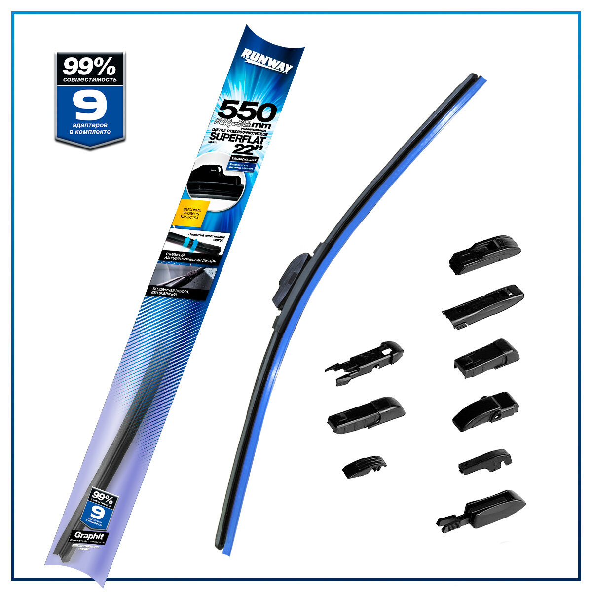 10 цен на Щетка стеклоочистителя бескаркасная универсальная SUPERFLAT 550мм, RUNWAY