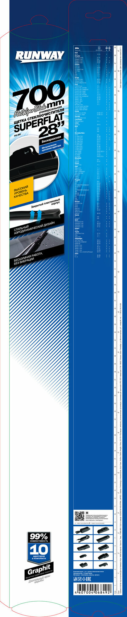 Щетка стеклоочистителя бескаркасная универсальная SUPERFLAT 700мм, RUNWAY информация: