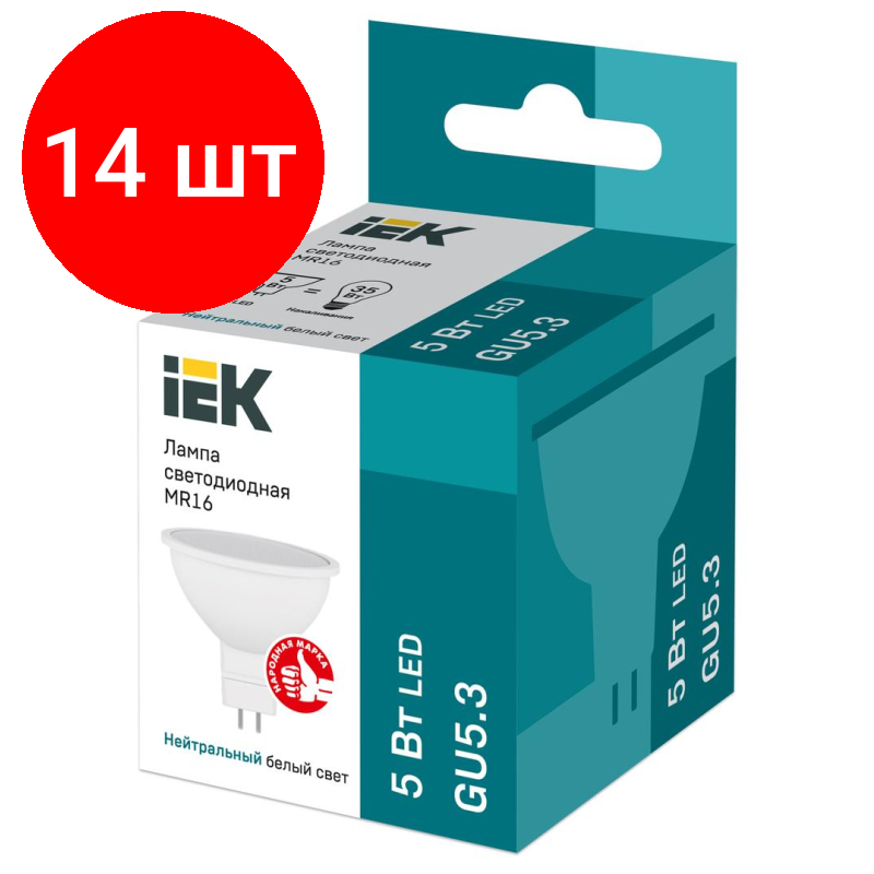 (14 шт.) Светодиодная лампочка IEK MR16 5Вт 230В 4000К GU5.3 2 035 ₽