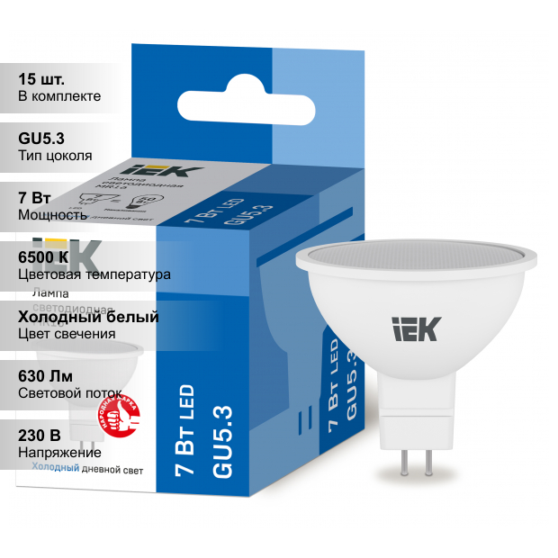 (15 шт.) Светодиодная лампочка IEK MR16 7Вт 230В 6500К GU5.3 информация: