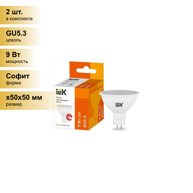 Отзывы на (2 шт.) Светодиодная лампочка IEK MR16 GU5.3 220V 9W(810lm) 3000К 2К 50x50 матов. LLE-MR16-9-230-30-GU5 . Цоколь GU5.3
