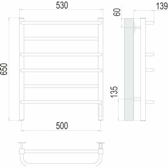 | Дополнительная информация | в комплекте: полотенцесушитель, телескопическое крепление - 4 шт, модуль скрытого подключения -1 шт, съемный кабель |