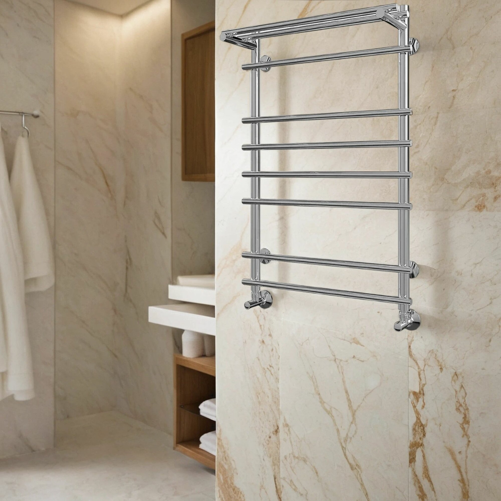 Полотенцесушитель Водяной узкий с полкой Di Kron, модель Premium-T 800х400 боковое подключение 50 см слева угловое