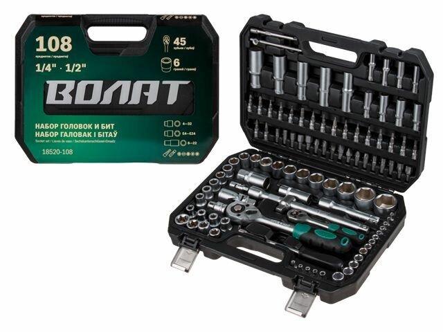 Набор инструментов 1/4", 1/2" 6 граней 108 предметов волат (18520-108)