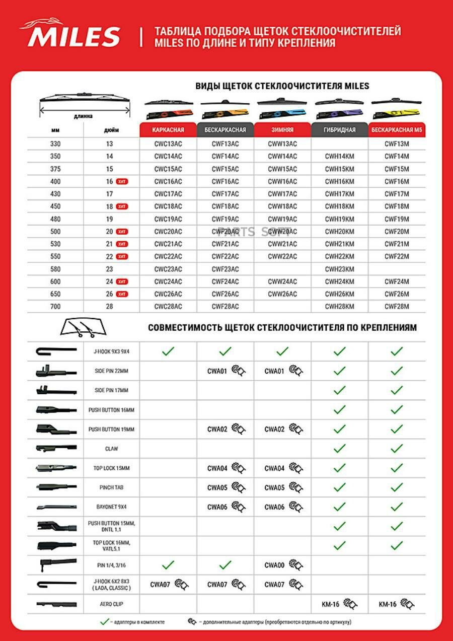 10 цен на Щетка С/О Каркасная Miles 19/480Mm В Коробке + Мультиадаптер Miles арт. cwc19ac