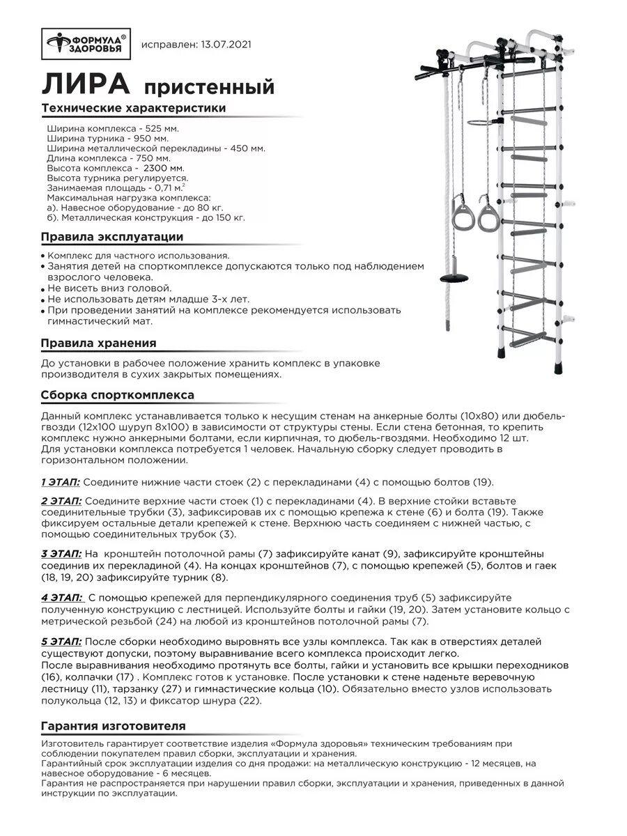 Детский спортивный комплекс пристенный Формула здоровья Лира белый-черный