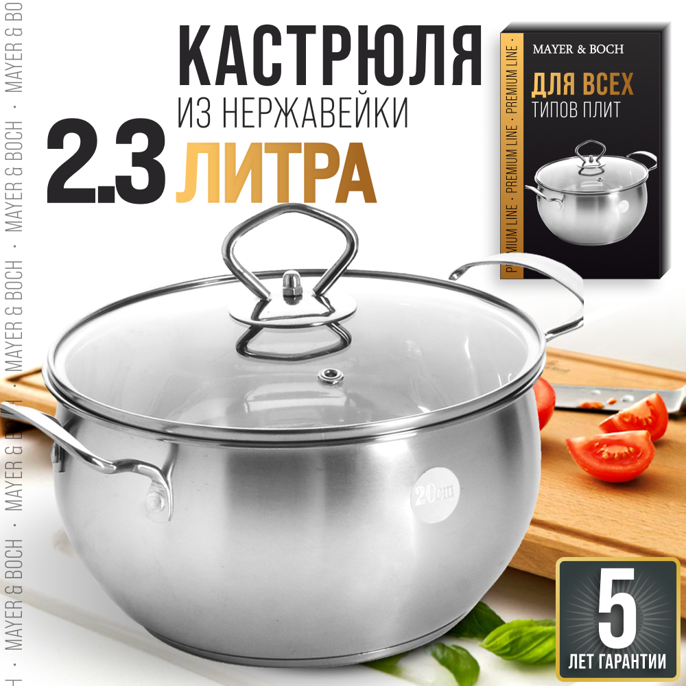 10 цен на Кастрюля с крышкой 2,3 л из нержавеющей стали MAYER&BOCH 30886