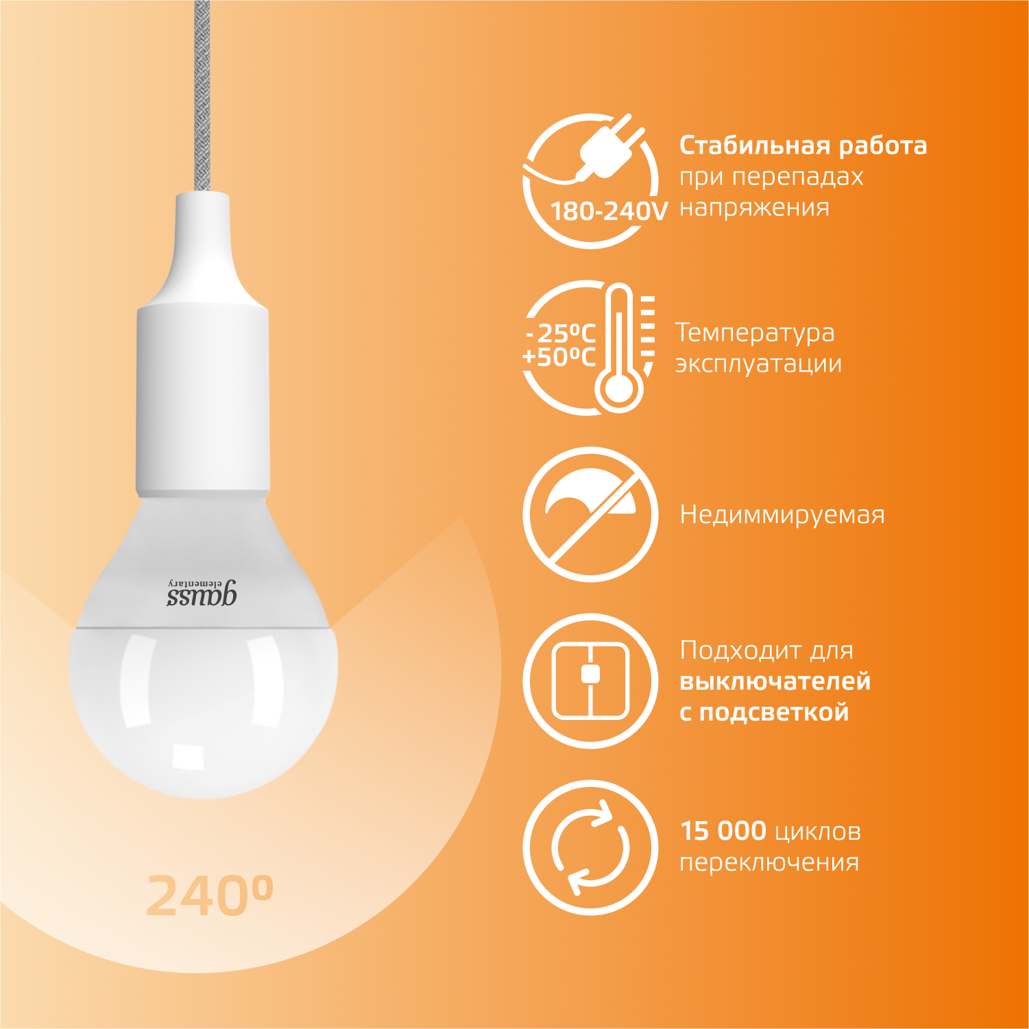 | Эквивалент лампы накаливания | 60 Вт |