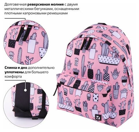 Рюкзак BRAUBERG сити-формат универсальный, «Kaktusy», розовый, 41×32×14 см, 228859