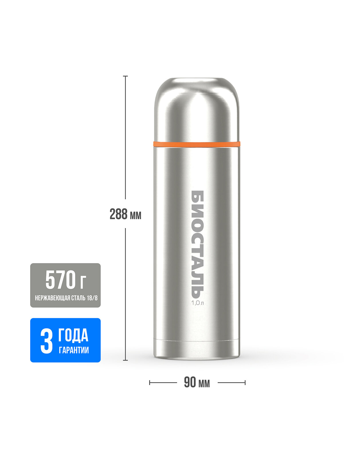 Термос BIOSTAL из нержавеющей стали, узкое горло, 1 л информация: