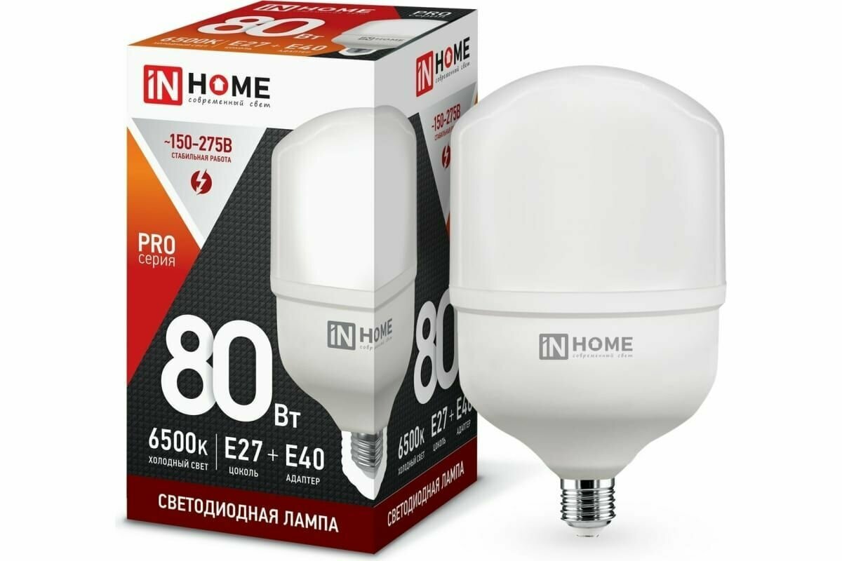 Лампочка светодиодная, белый холодный свет LED-HP-PRO 80Вт 230В E27 с адаптером Е40 6500К 7600Лм, IN HOME (арт. 4690612031149) - 1 штука 753 ₽