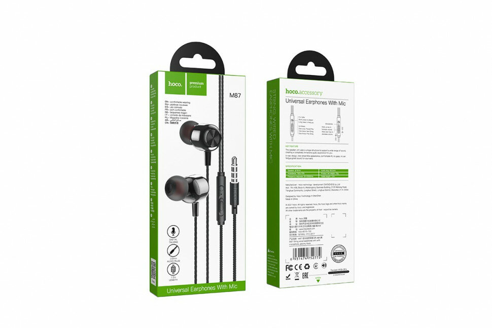 Наушники вакуумные для AUX разъема с микрофоном и регулятором громкости длина 1.2м Hoco M87 Gloomy Black