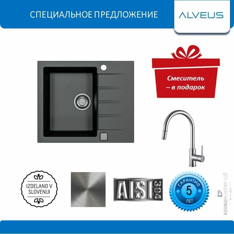 Отзывы на СЕТ Мойка ALVEUS GRANITAL CADIT 10 CARBON - G91 590 X 500 + Смеситель DELOS CHR
