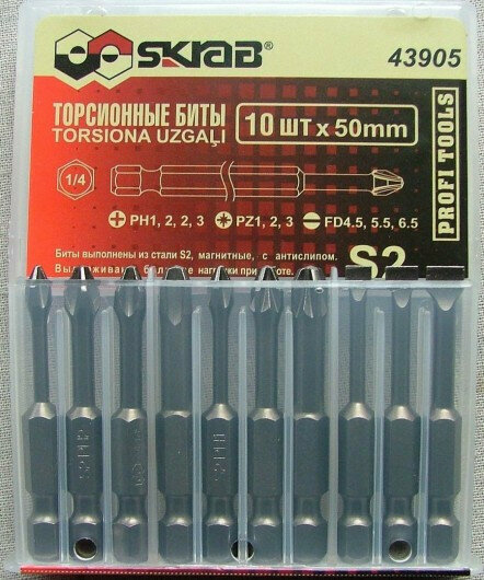 Набор бит 50мм 10шт. Торсионные (Skrab) (Артикул : 43905)