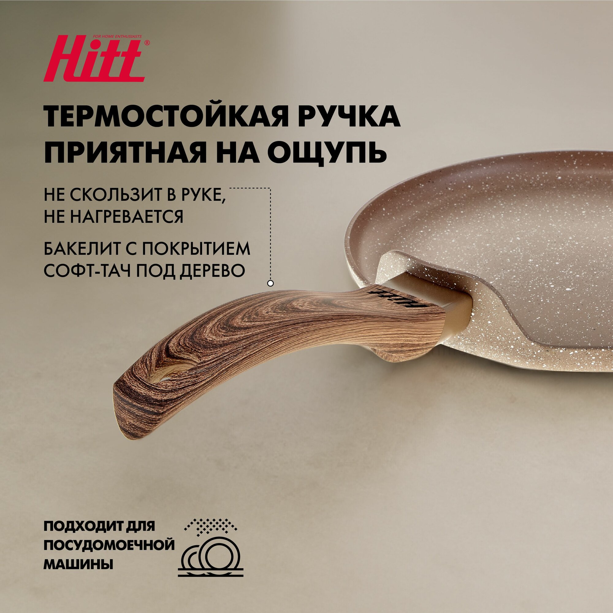 Сковорода 26 см для индукционной плиты, гранитное антипригарное покрытие, глубокая сковорода с ненагревающейся ручкой, Hitt Sahara Sandy 1 758 ₽