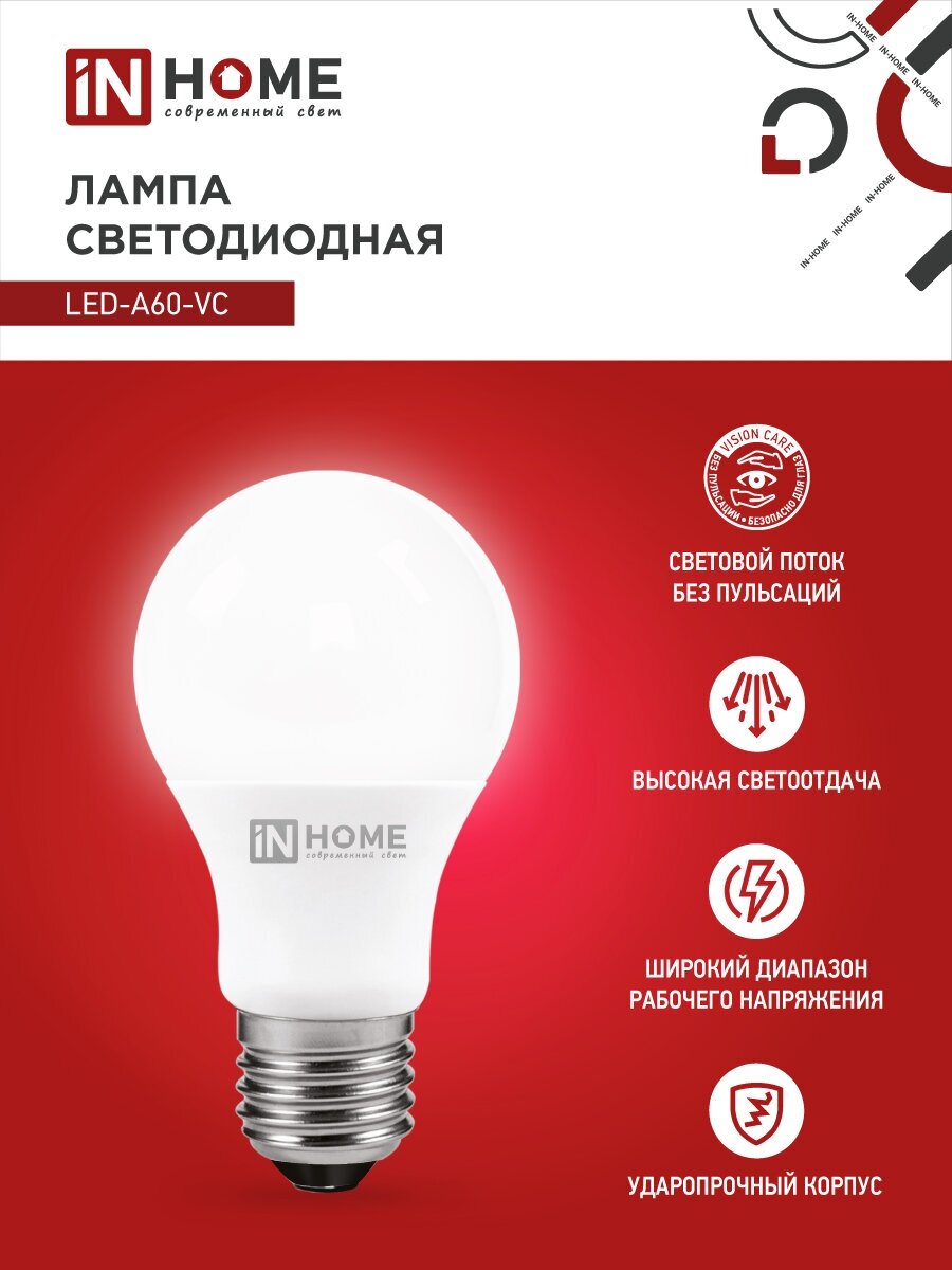 Лампа светодиодная IN HOME LED-A60-VC, Е27, 12 Вт, 230 В, 4000 К, 1140 Лм