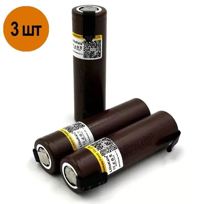 Аккумулятор Li-Ion 3000mAh 3.7 В LiitoKala HG2 18650 высокотоковый незащищенный с выводами, в упаковке: 3 шт.