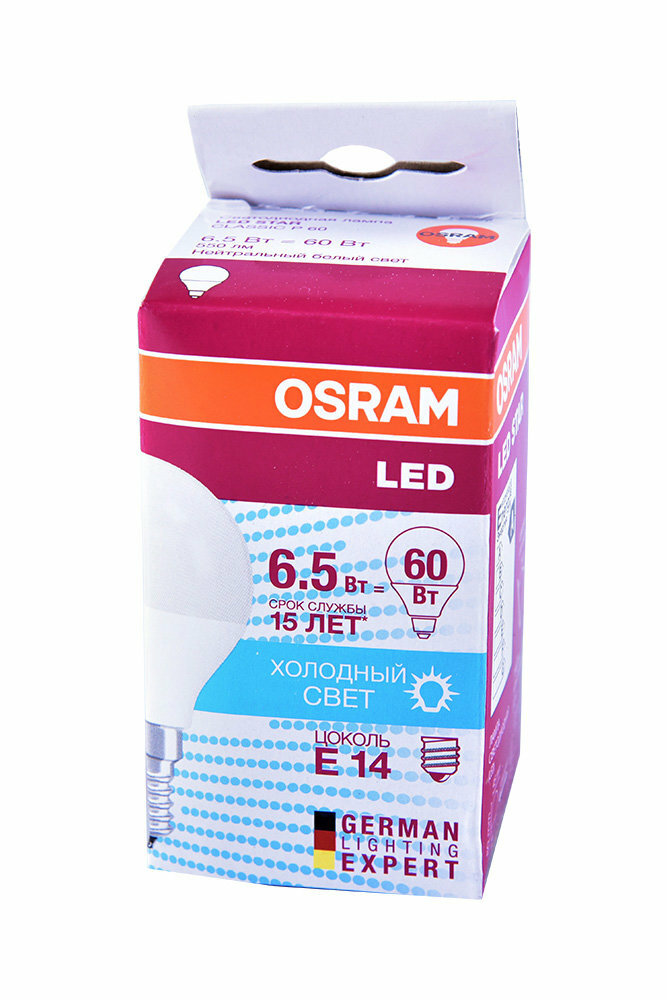 Лампа светодиодная (LED) Шар Е14 6.5Вт 550лм 4000К 230В матов. Osram информация: