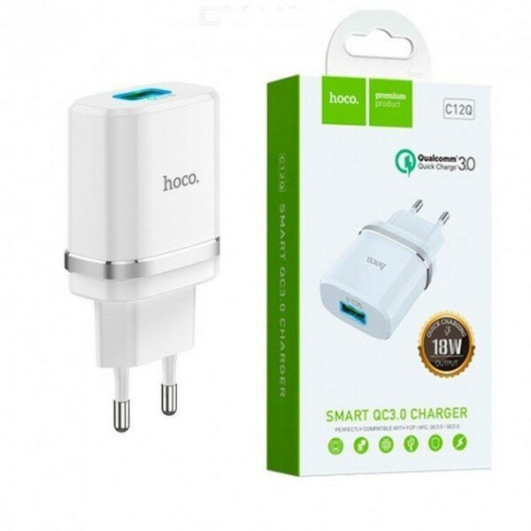Сетевое зарядное устройство c USB HOCO C12Q, QC3.0 белое