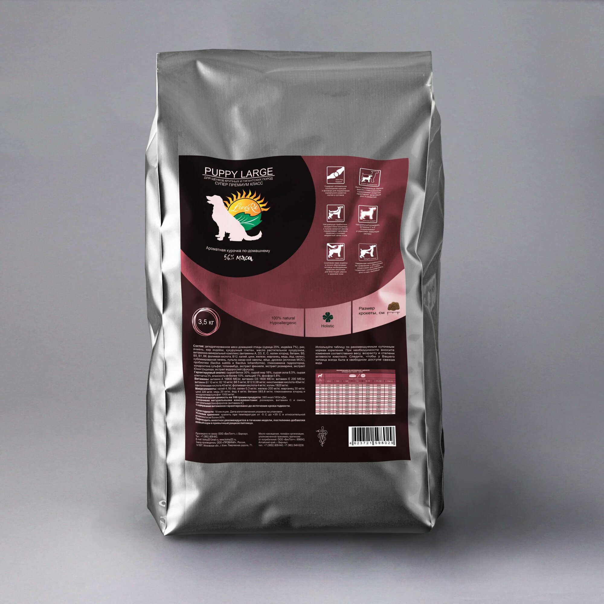 LiveRa, сухой корм для щенков гигантских пород Puppy Large, 3.5 кг. "Ароматная курочка по-домашнему" (курица,индейка) информация: