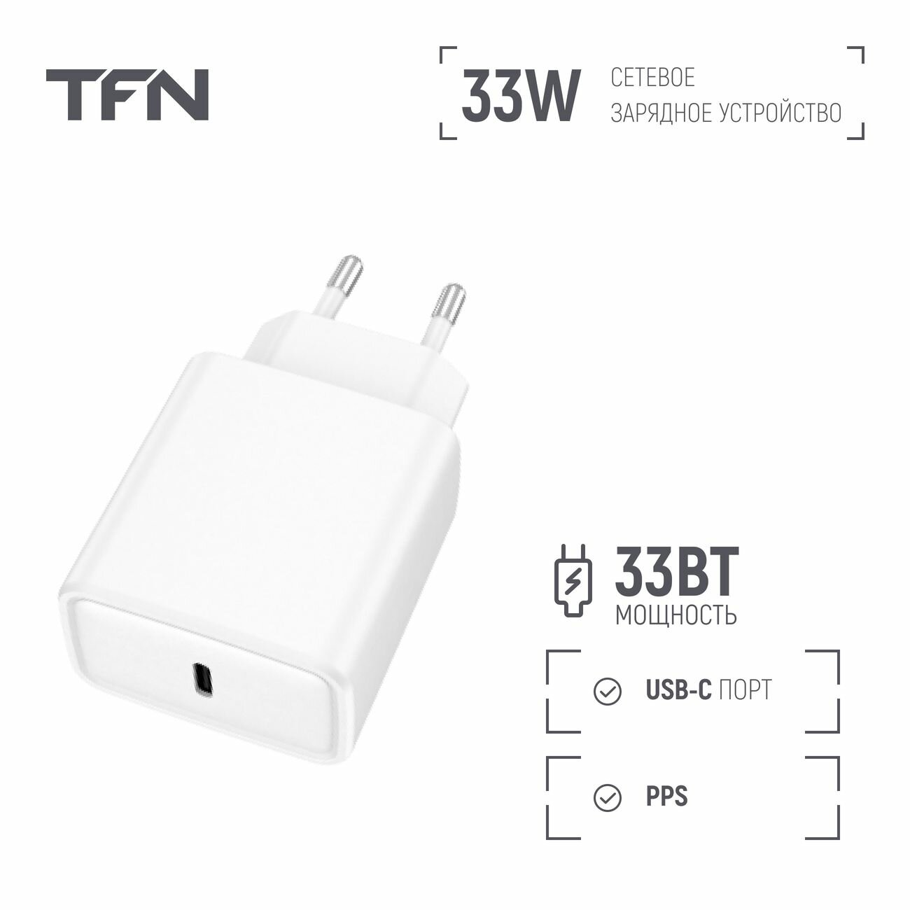 Сетевое зарядное устройство TFN Type-C PD 33W White (WCRPD23) информация: