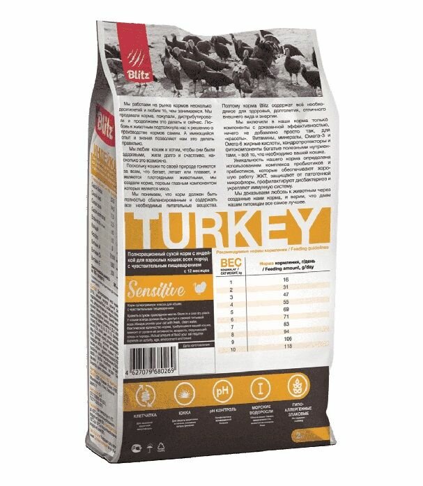 Сухой корм для кошек Blitz Sensitive Adult Cats Turkey с индейкой 2 кг информация: