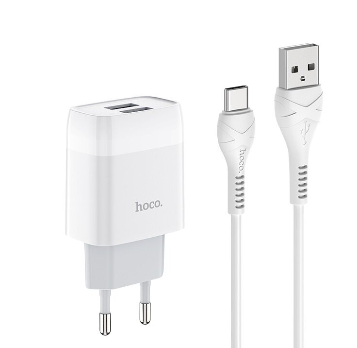 Сетевое ЗУ Hoco C73A + кабель Type C (2USB/2.4A) белое