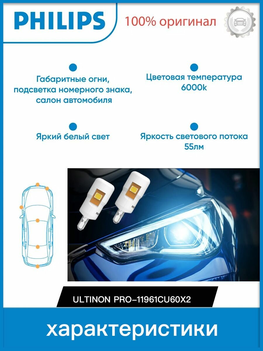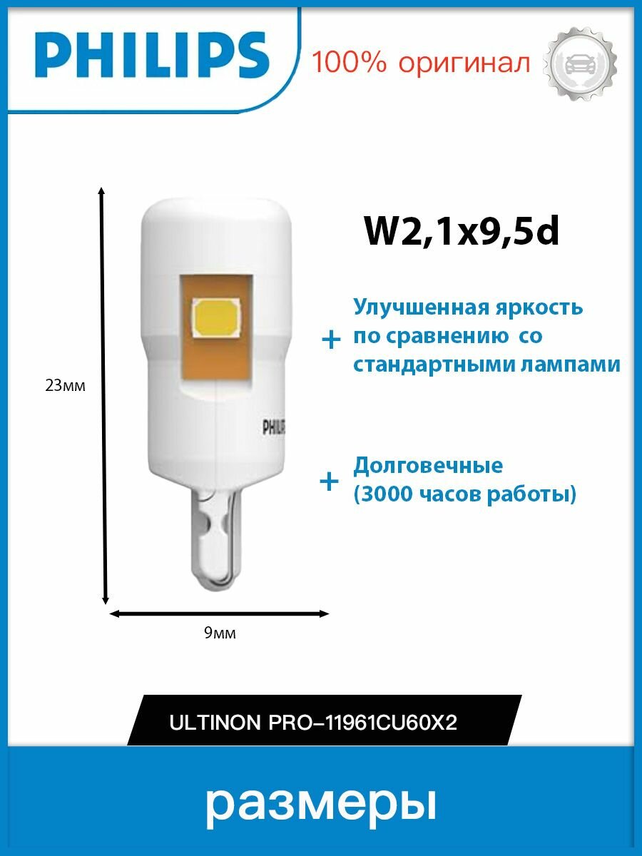Лампа W5W 12V 0,6W (W2,1x9,5d) 6000K Ultinon Pro6000 SI (бл. 2шт) - 11961CU60X2 информация: