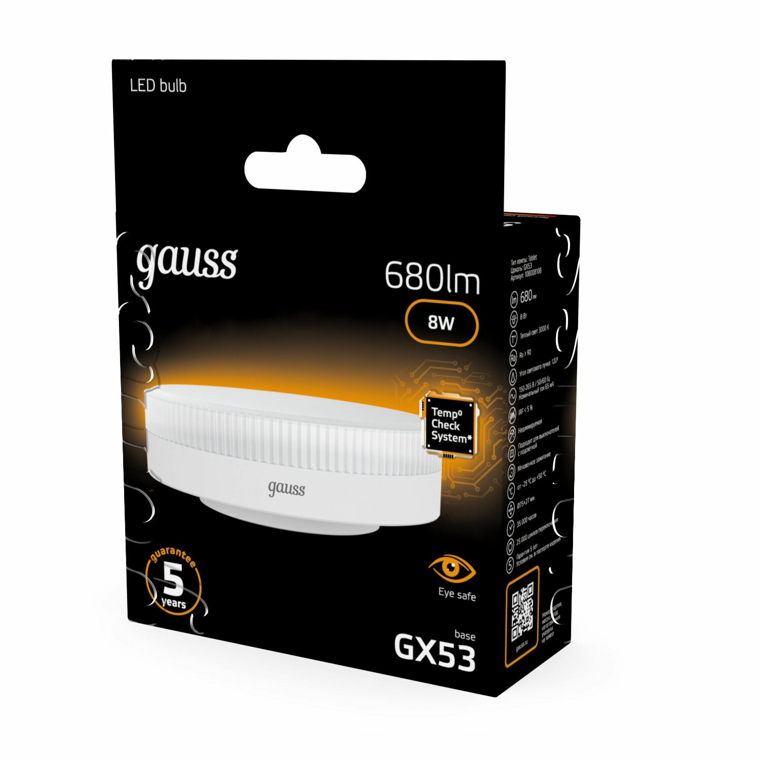 (5 шт) Лампа Gauss GX53 8W 680lm 3000K LED 1/10/100 информация: