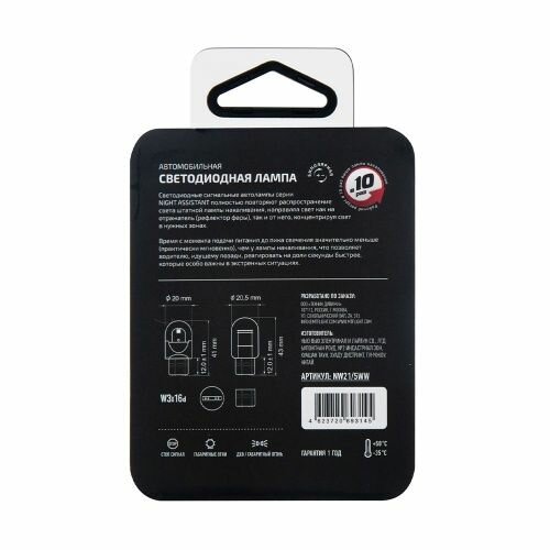 Светодиодная автолампа MTF Light серия Night Assistant 12В, 2.5Вт, W21/5W, белый, блистер, 1 шт.(С) информация:
