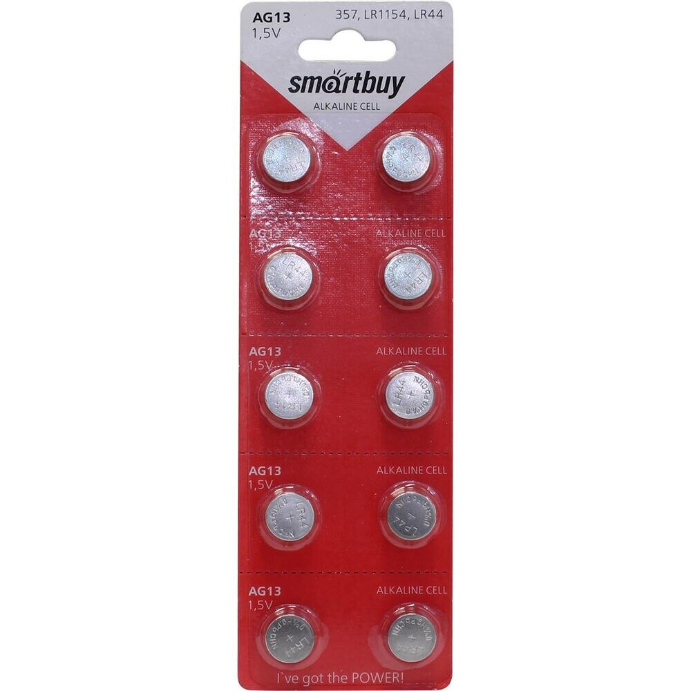 Батарейка щелочная SmartBuy AG13 (L1154/LR44/A76/357), в упаковке: 10 шт.