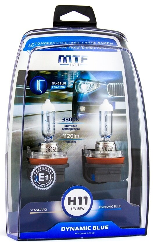 Галогеновые лампы MTF light Dynamic Blue 3300K H11 информация: