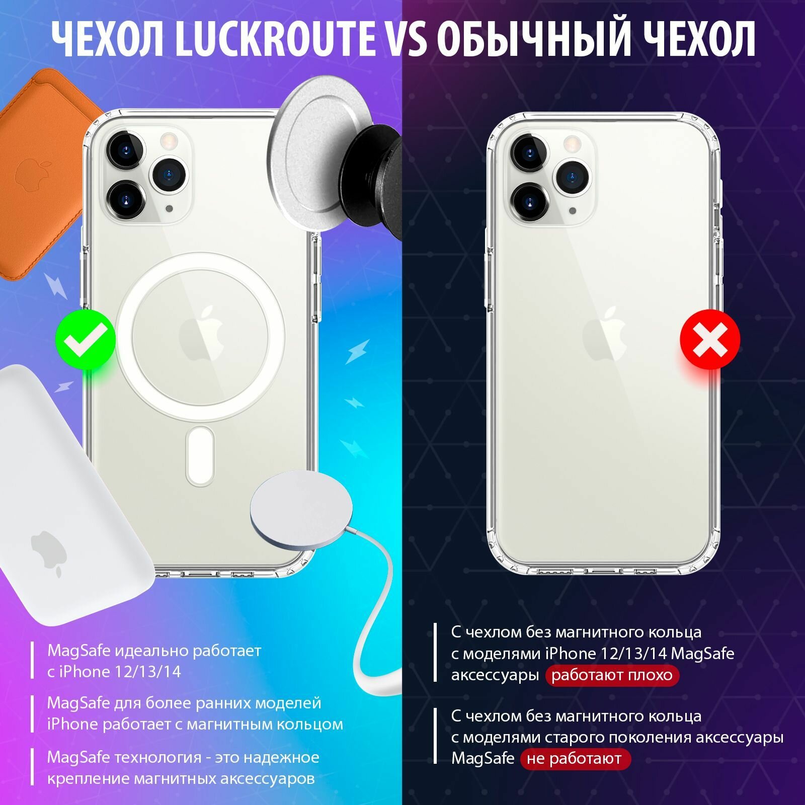 Чехол Luckroute для iPhone 11 Pro Max добавляет функцию MagSafe, - Противоударный прозрачный кейс с усиленными углами информация: