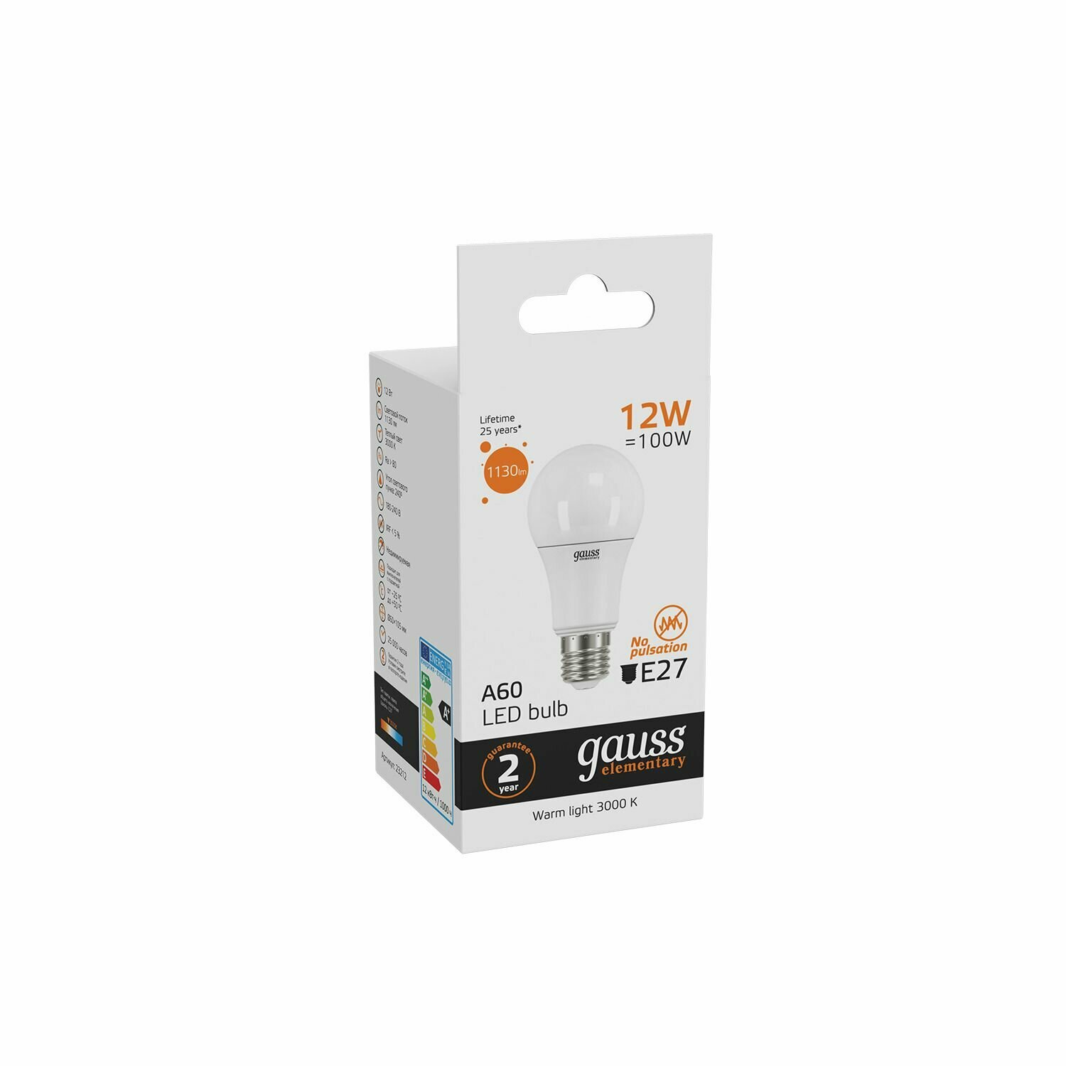 (2 шт) Лампа Gauss Elementary A60 12W 1130lm 3000K E27 LED информация: