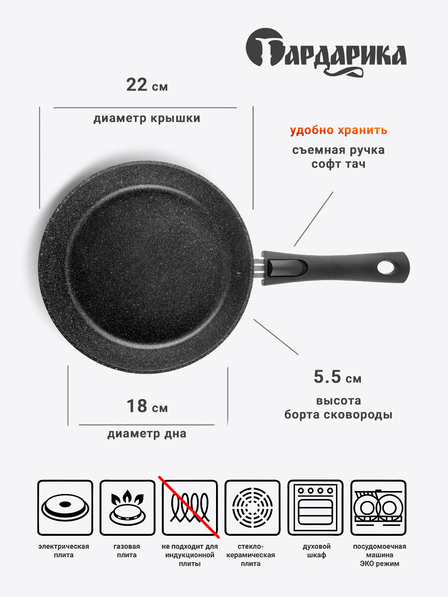 Сковорода 22см со съемной ручкой Гардарика информация: