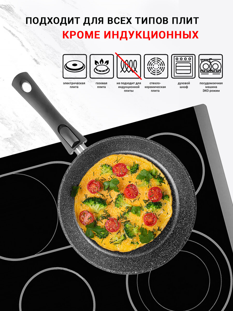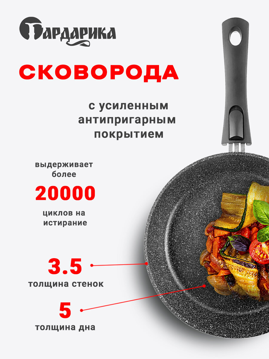 Сковорода с антипригарным покрытием без крышки и ручкой soft-touch д.24 "гардарика" (8)