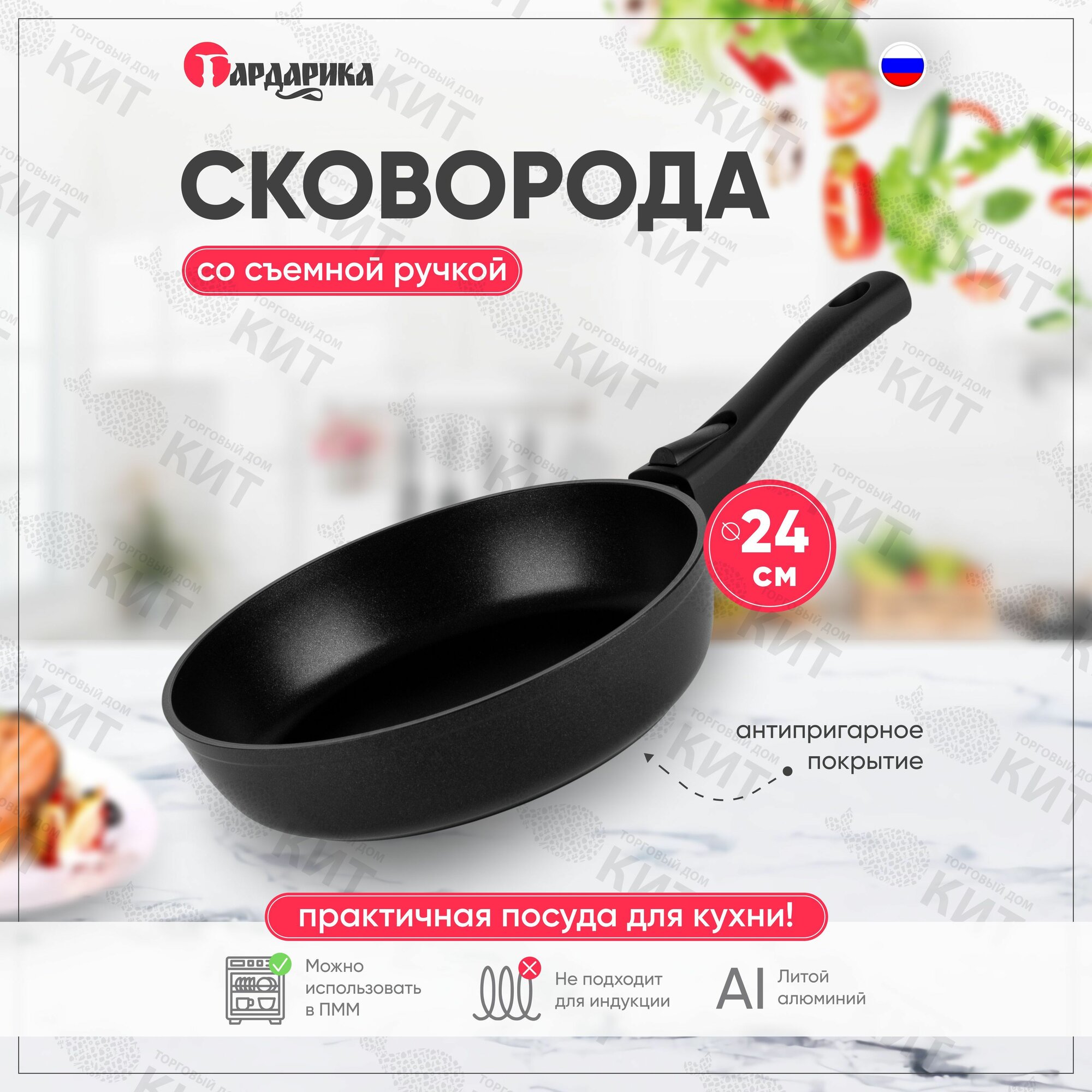 10 цен на Сковорода со съемной ручкой 24 см, литая с усиленным антипригарны покрытием, Гардарика Премьера